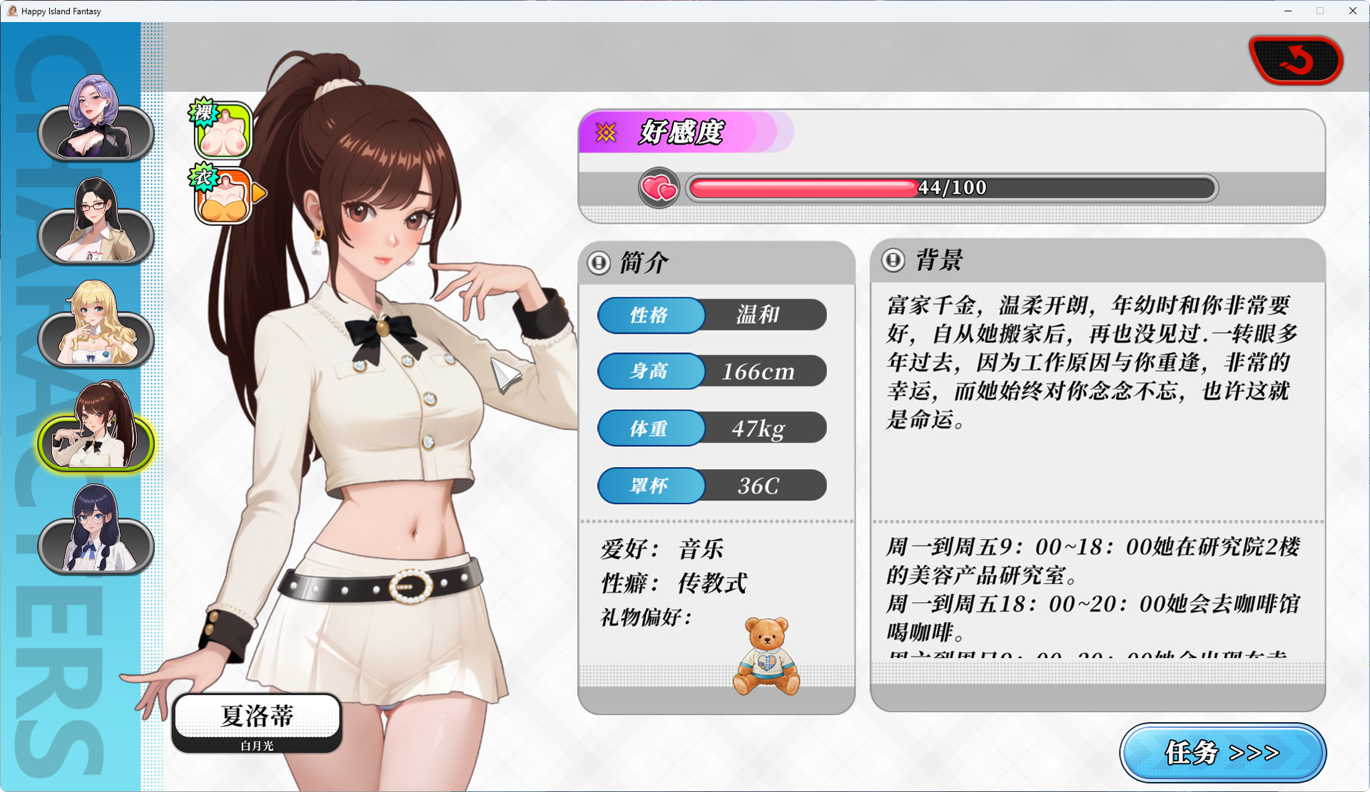 醒来后,村长告诉他这里是“幸福岛”,想要离开就要等待下一次“祭祀日”,于是罗恩就住了下来。